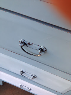 I had a tallboy already painted in duck egg chalk paint who needing a little something, so pulled her out of the workshop and had a go. Loving how traditional she still is, but with a quirky twist, great storage; clothes, toys, bathroom?? I thought her quirky shape deserved a little distressing, just a touch!